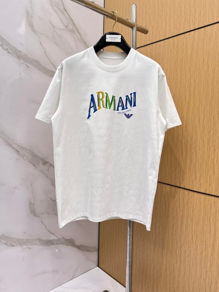 Armani T-Shirt Colorful Logo Print Crew Neck Short Sleeve Black