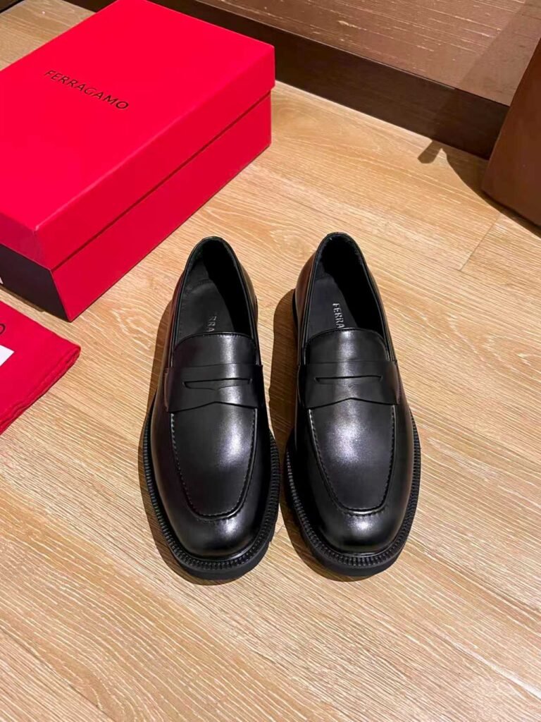FERRAGAMO Black Smooth Leather Thick Sole Penny Loafer Slip-On Men Business Dress Shoes