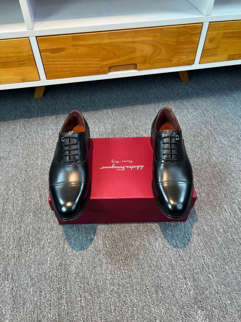 Ferragamo Black Smooth Calf Leather Cap Toe Lace-Up Men Business Wedding Oxford Formal Dress Shoes