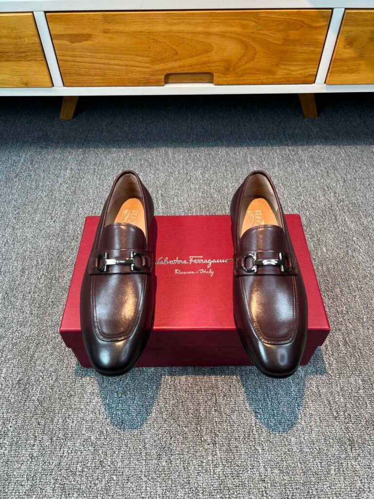 Ferragamo Black Polished Leather Gancini Buckle Slip-On Men Classic Business Formal Loafer Shoes