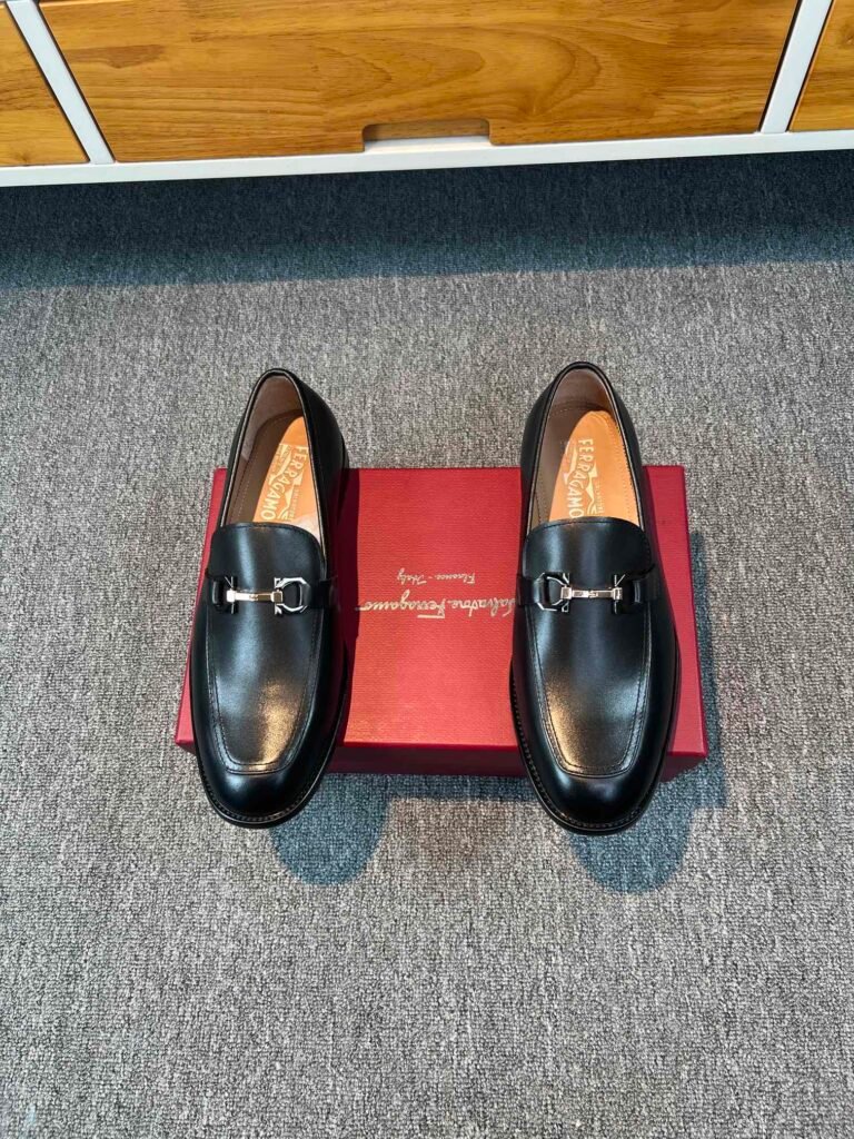 Ferragamo Black Matte Smooth Leather Horsebit Metal Buckle Slip-On Men Business Formal Loafer Shoes
