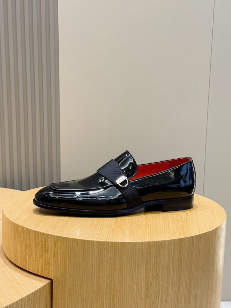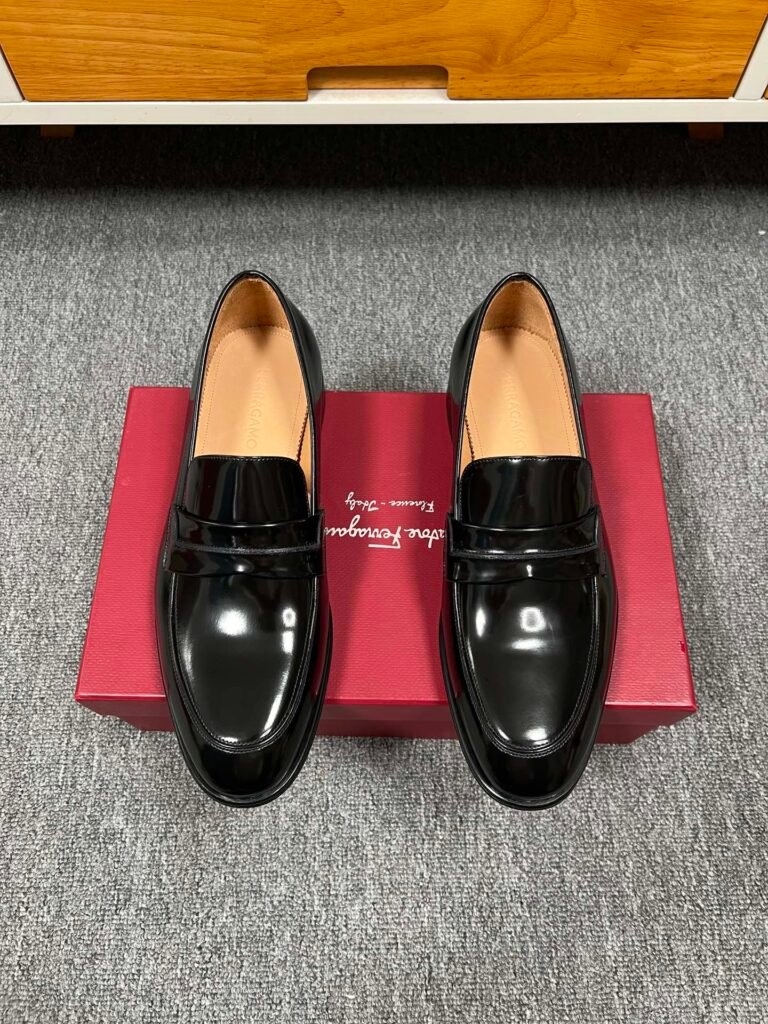 Ferragamo Black Patent Leather Strap Men Formal Slip-On Penny Loafers