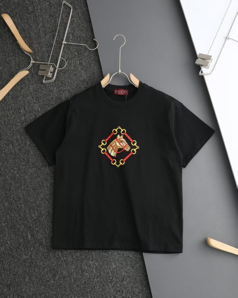 Gucci Horse Print T-Shirt Graphic Crew Neck Short Sleeve White Black