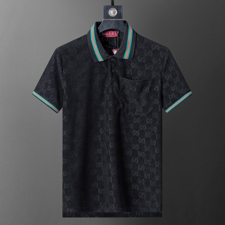 Gucci Black GG Jacquard Striped Collar Men’s Polo Shirt