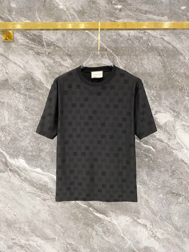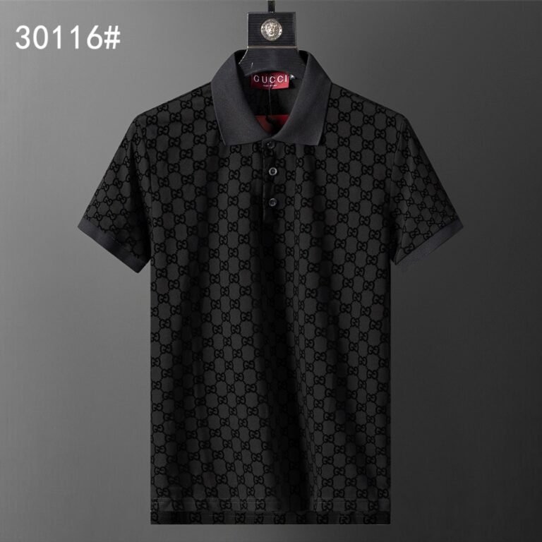 Gucci Black Jacquard Monogram Pattern Men Casual Short Sleeve Polo Shirt
