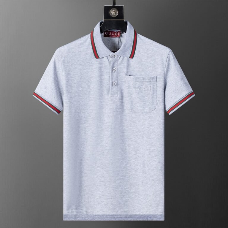 Gucci Gray Green Red Striped Pocket Letter Men Casual Short Sleeve Polo Shirt
