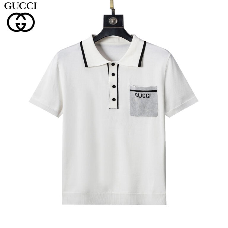 Gucci Black & White Contrast Trim Pocket Letter Knit Men Casual Short Sleeve Polo Shirt