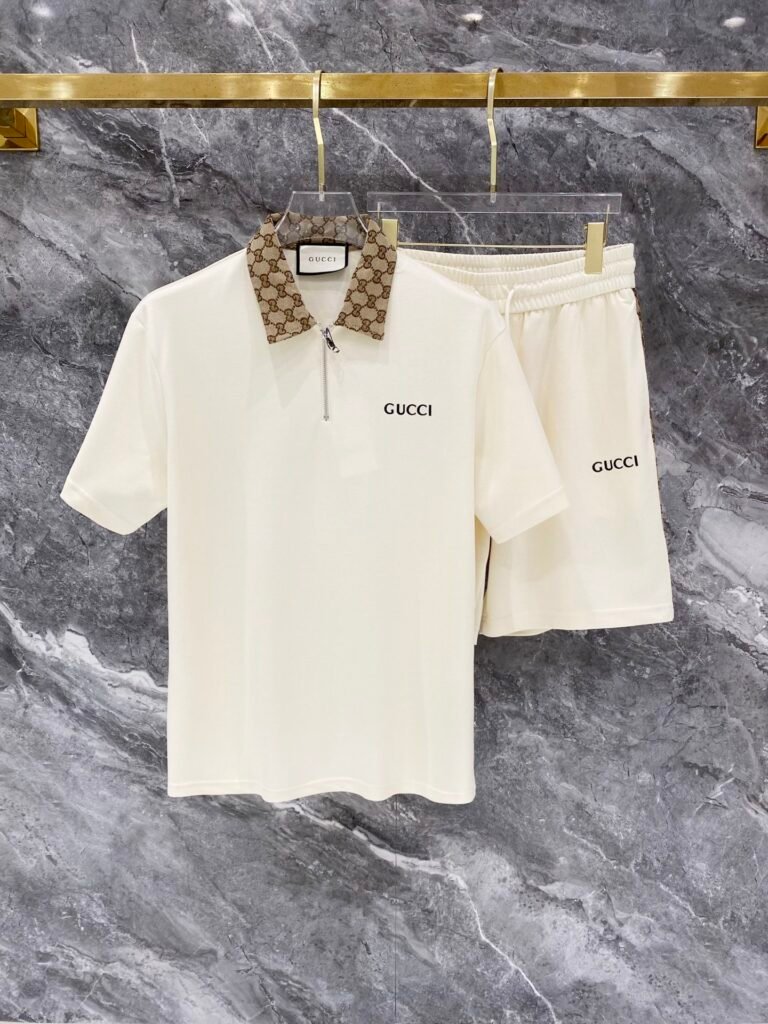 Gucci Beige Monogram Collar Half-Zip Polo & Drawstring Shorts Two-Piece Men Set