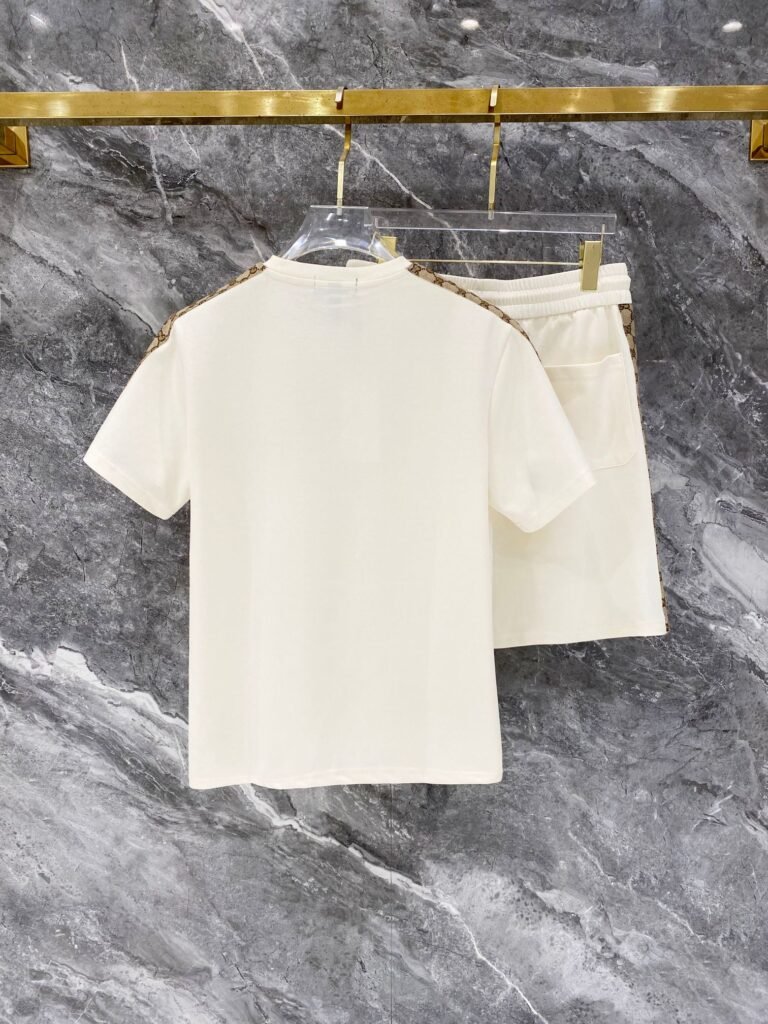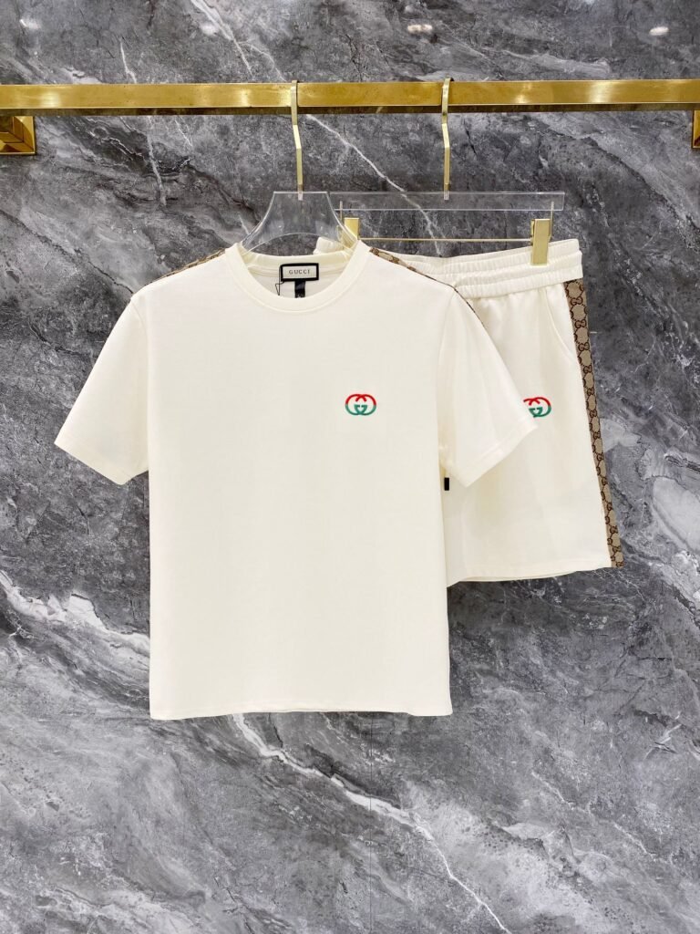 Gucci Cream Side Stripe Logo T-Shirt & Drawstring Shorts Two-Piece Men Casual Set