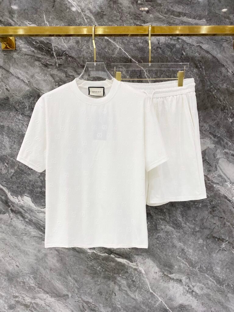 Gucci Allover Logo Print Tee & Shorts Co-Ord Set In White