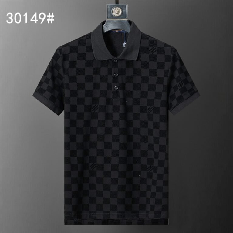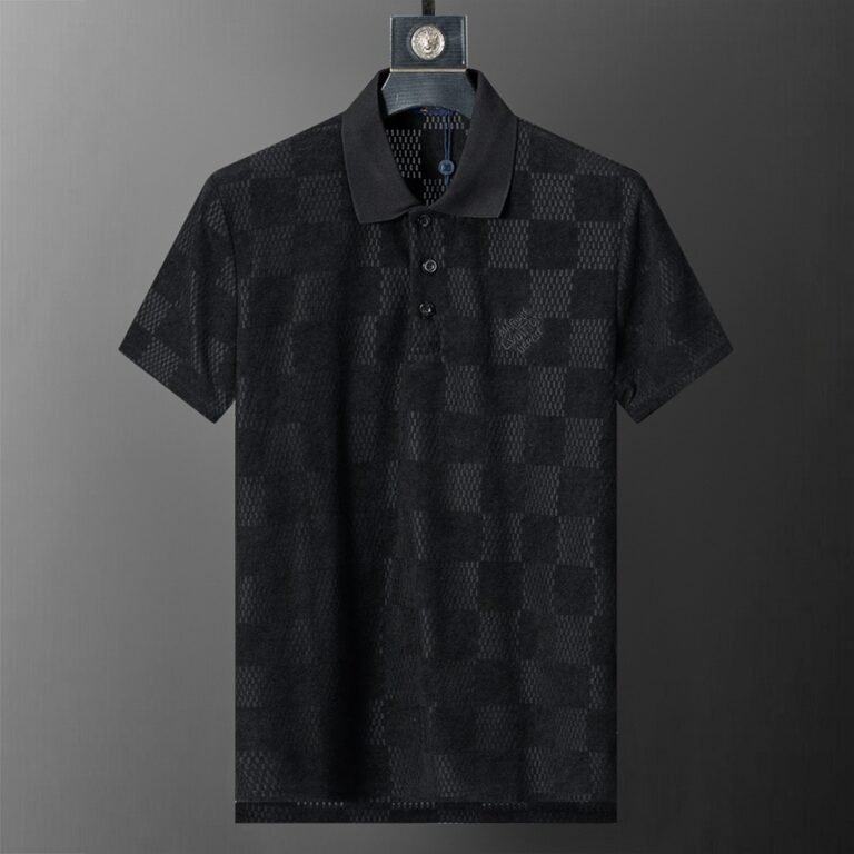 Louis Vuitton Black Checker Jacquard Men Casual Short Sleeve Polo Shirt