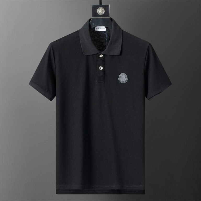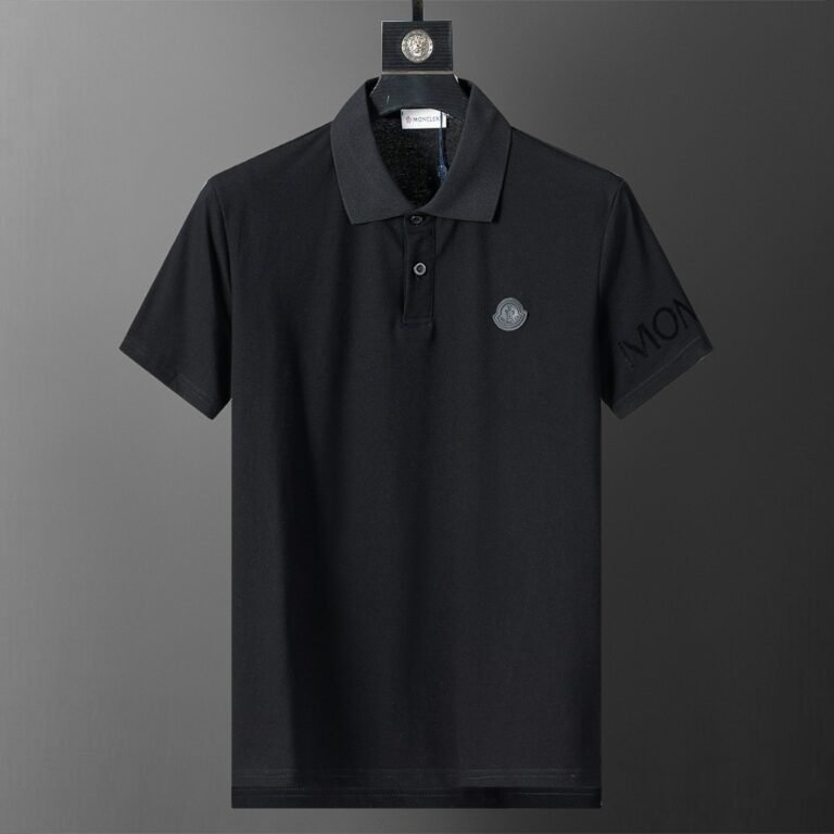 Moncler Black Minimal Big M Letter Patch Casual Men Short Sleeve Polo Shirt