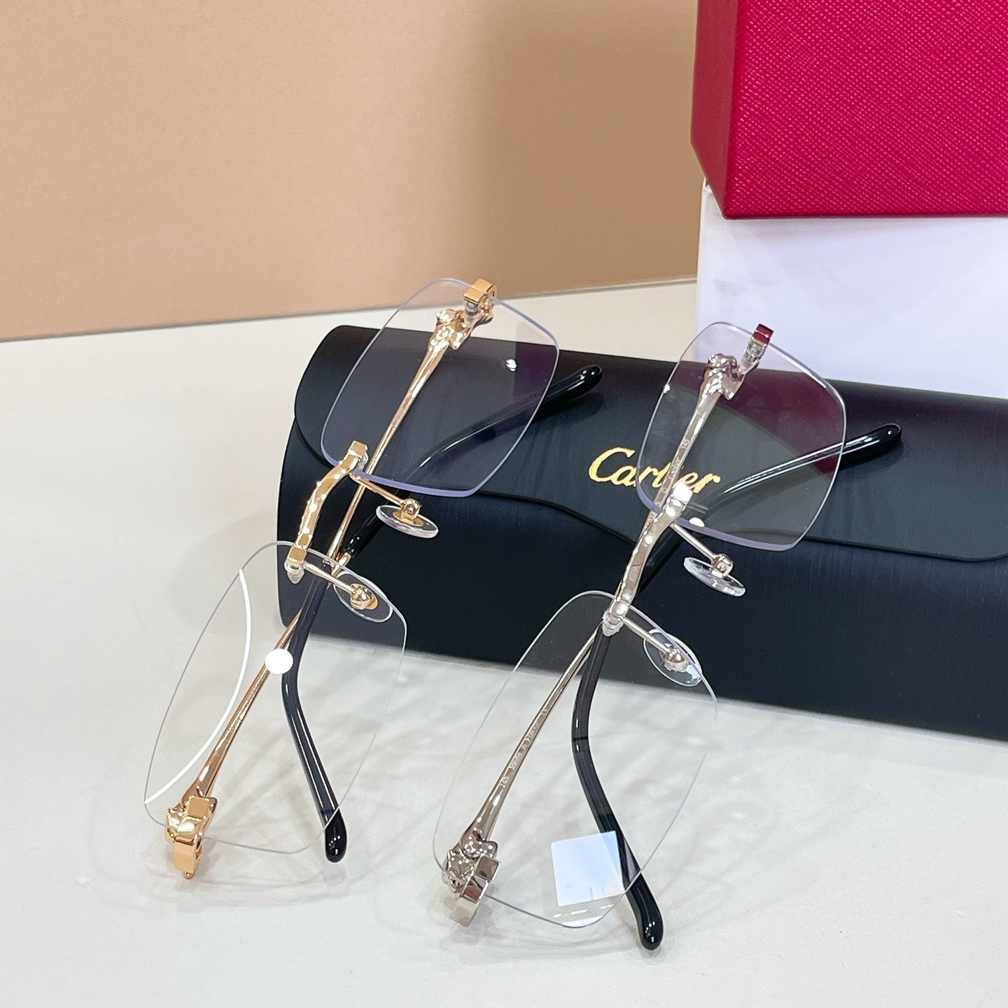Cartier Panthère Rimless Frame Optical Glasses Gold Silver