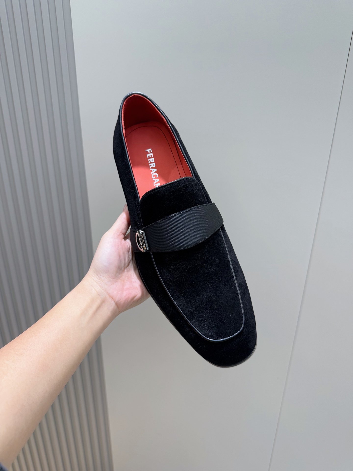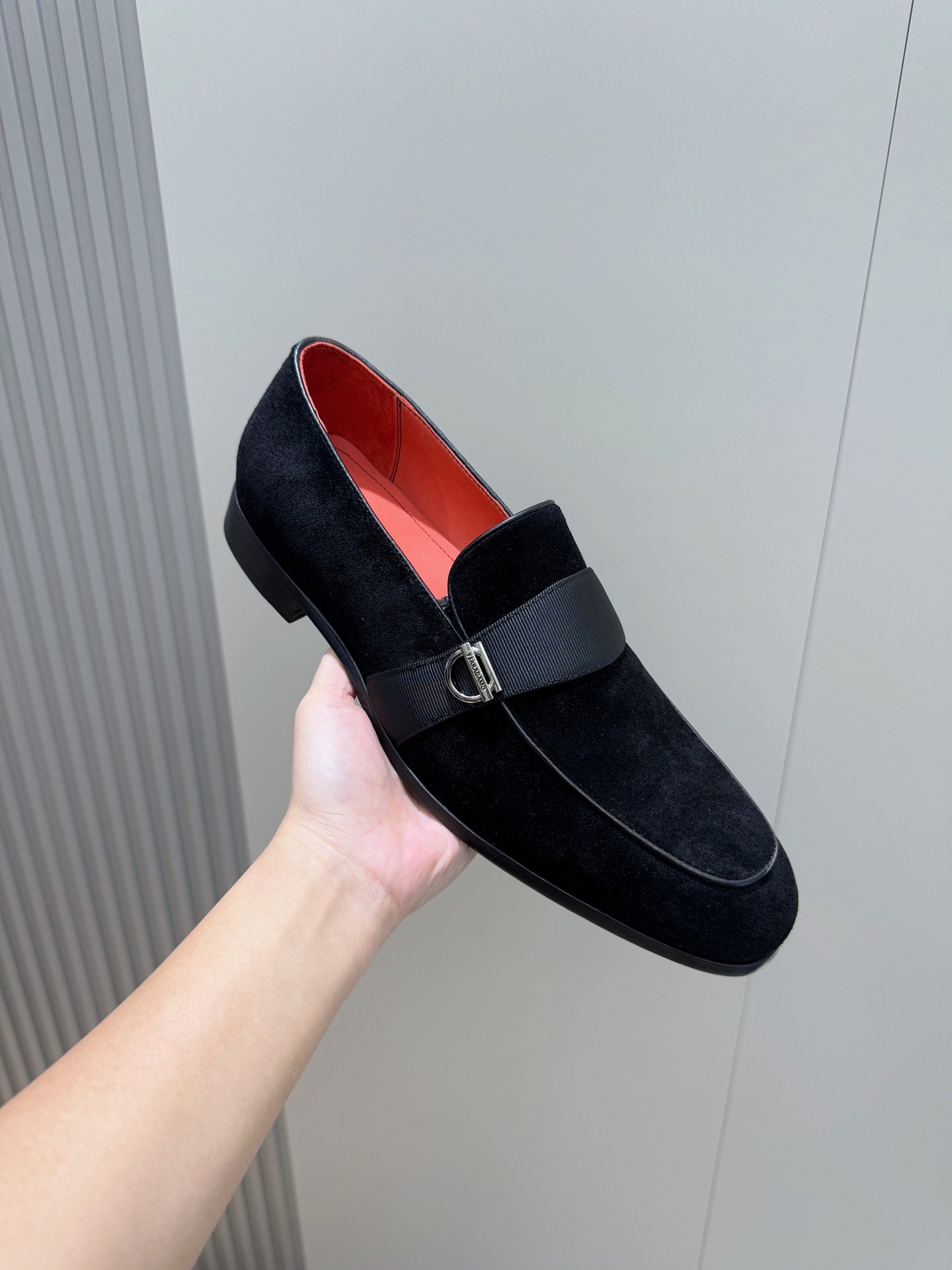 Be the first to review “Ferragamo Black Velvet Suede Grosgrain Strap Men Formal Wedding Loafers” Cancel reply