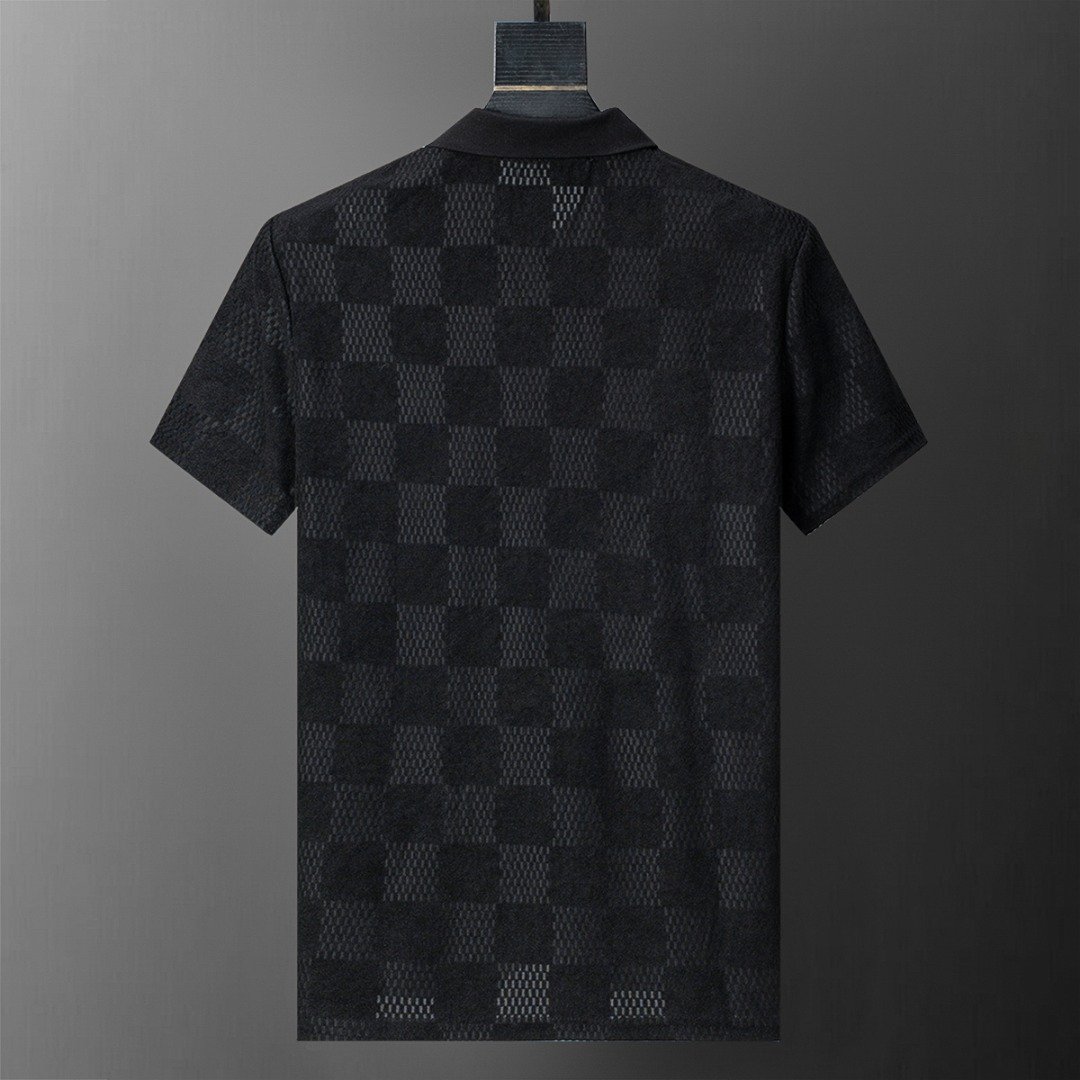 Louis Vuitton Black Check Polka Dot Contrast Collar Men Casual Short Sleeve Polo Shirt