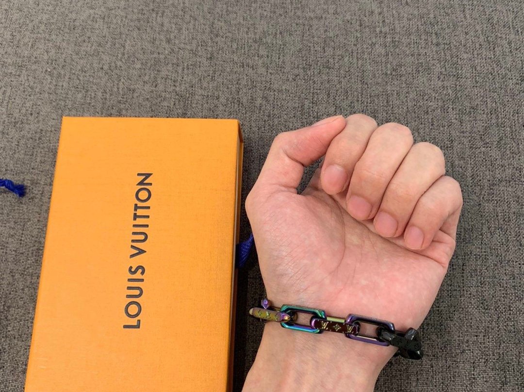 Engineered for iconic Parisian luxury streetwear, this Louis Vuitton bracelet blends heritage monogram motifs with modern, edgy craftsmanship.