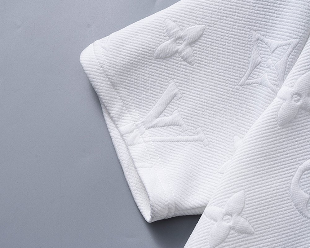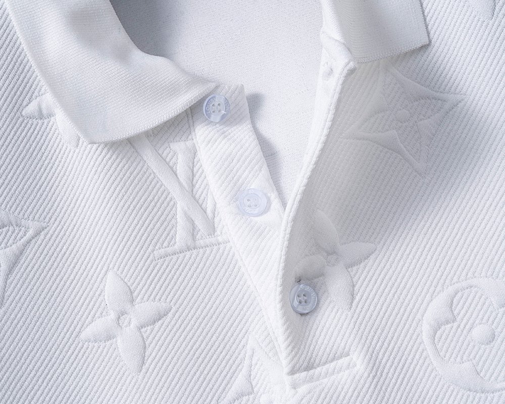 Louis Vuitton White Full Floral Embossed Jacquard Men Casual Short Sleeve Polo Shirt