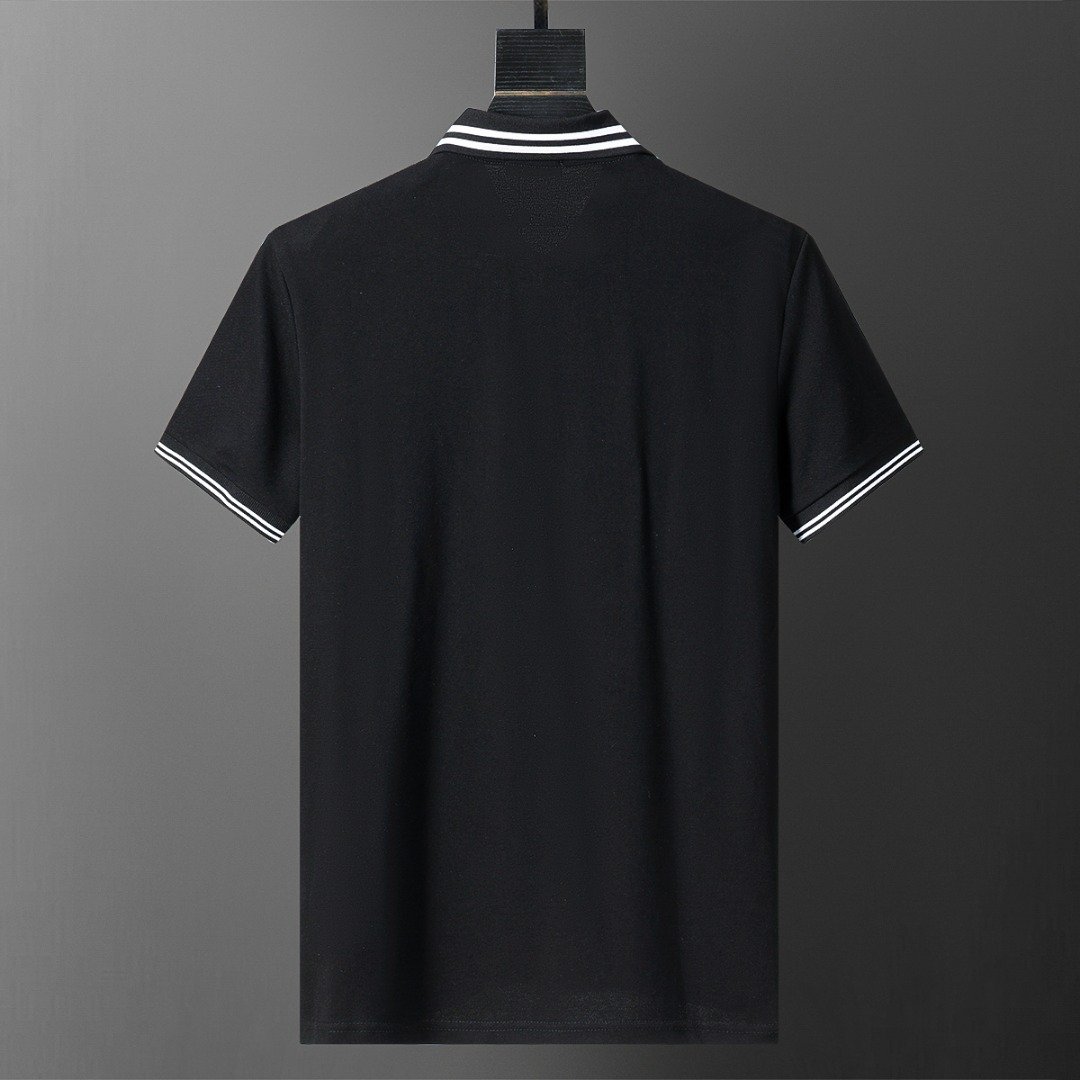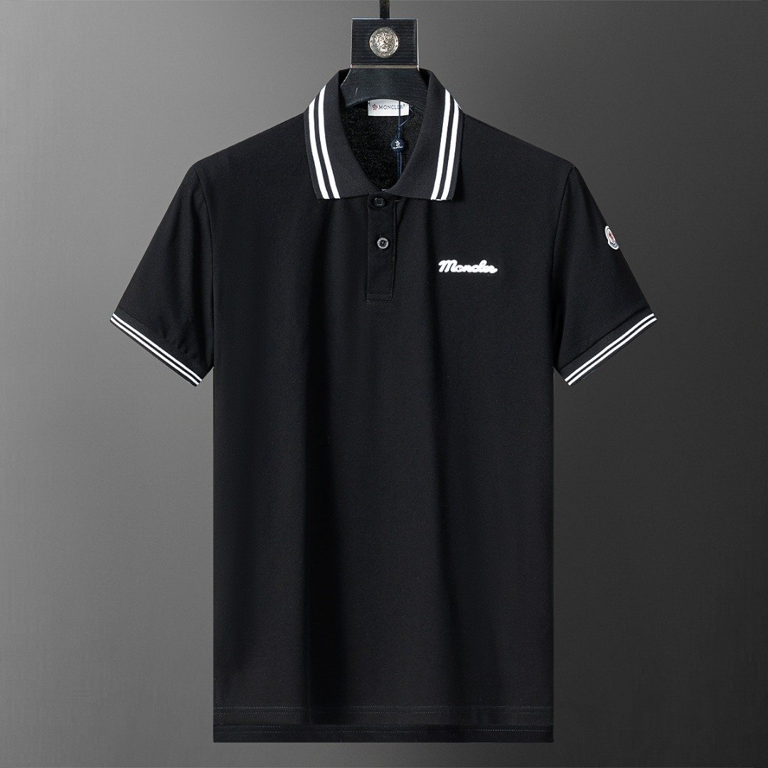 Moncler Black White Striped Collar Letter Embroidered Men Casual Short Sleeve Polo Shirt