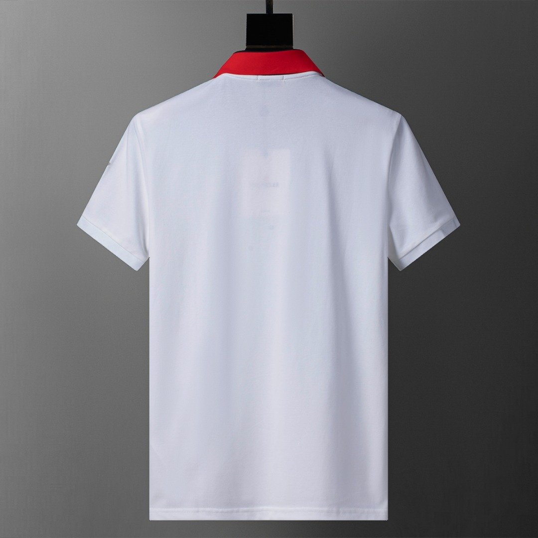 Moncler White Round Patch Decor Sleeve Letter Men Casual Short Sleeve Polo Shirt