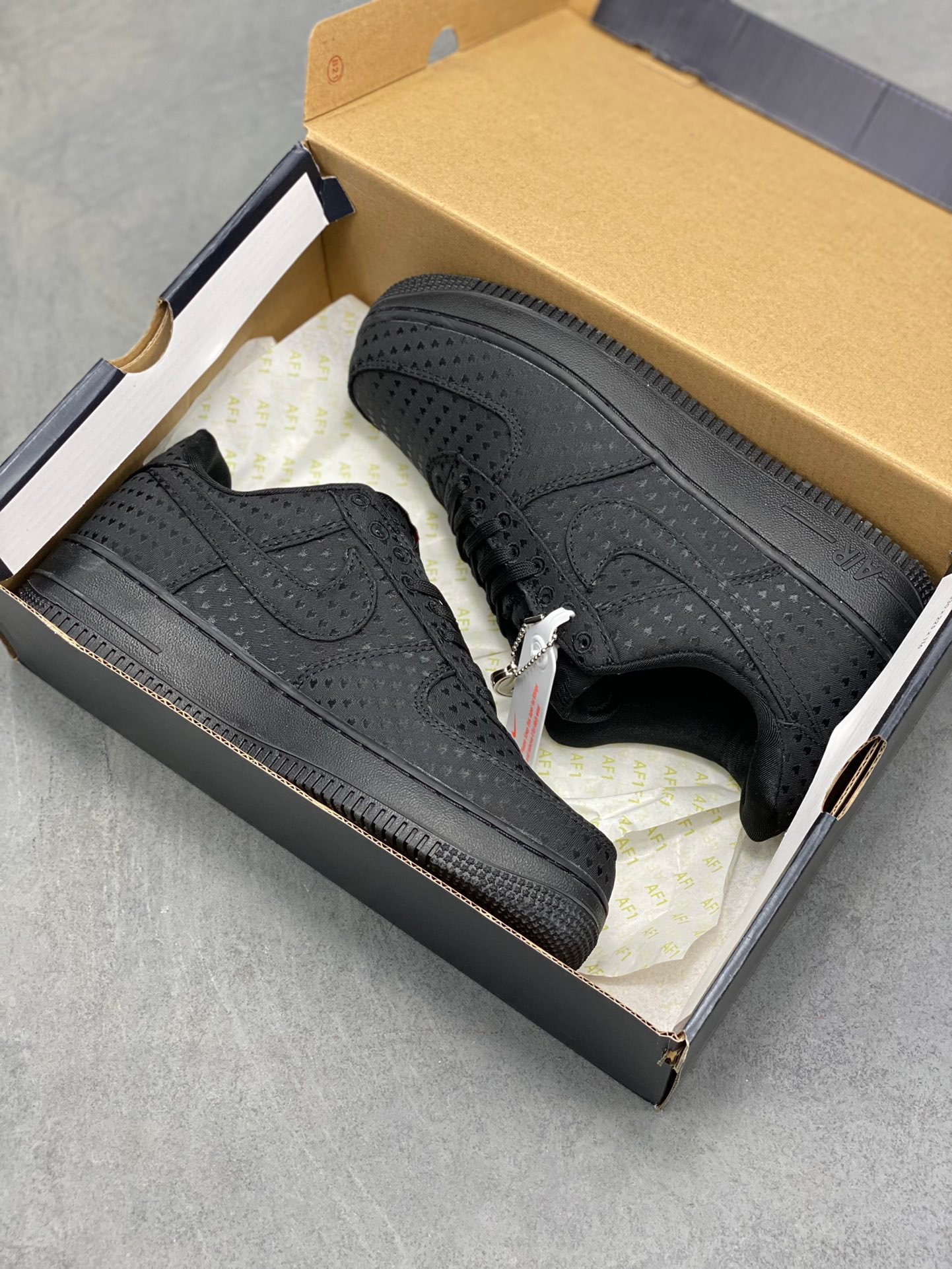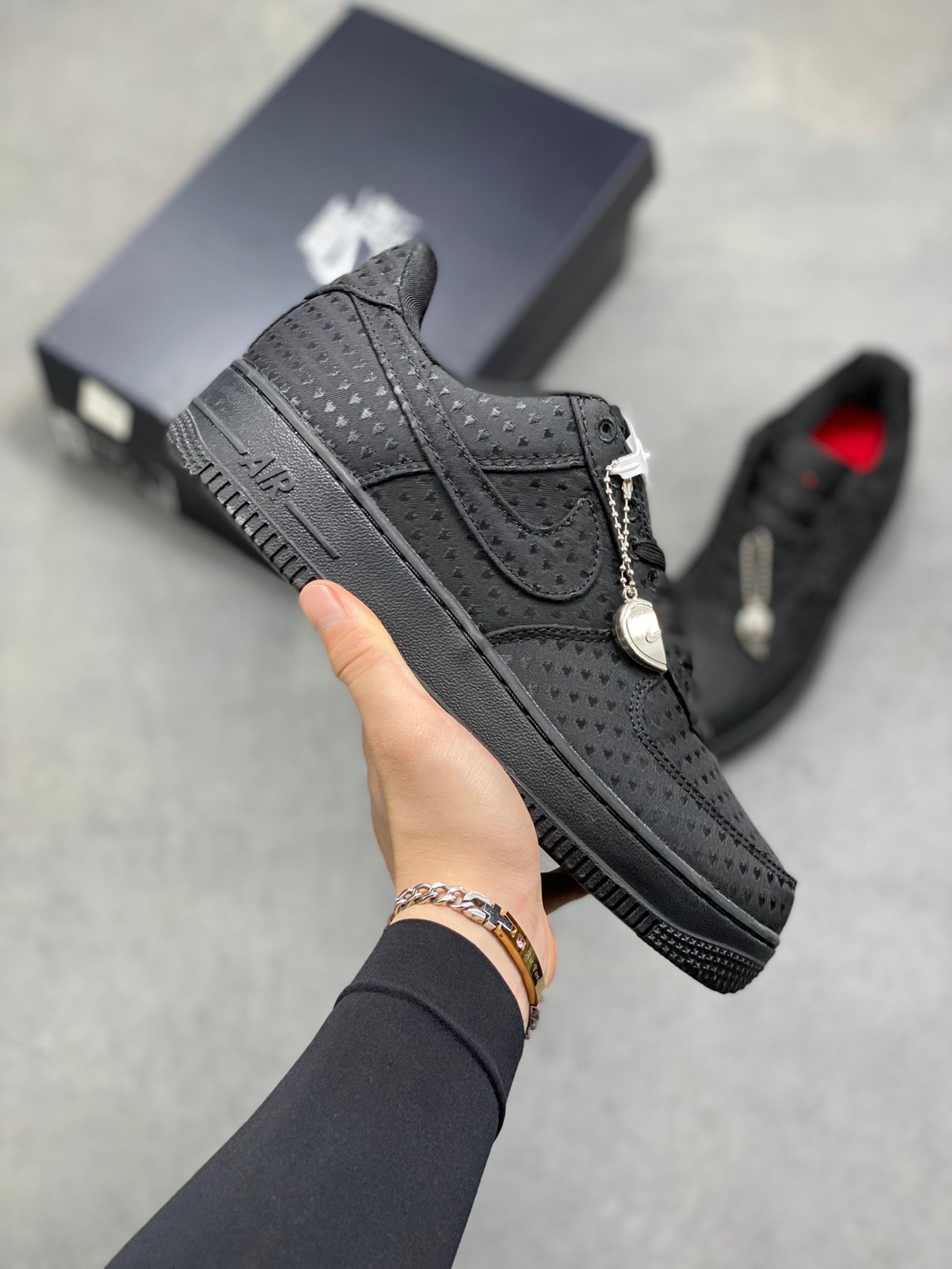 Nike Air Force 1 All Black Heart Pattern Love Pendant Low Top Sneakers
