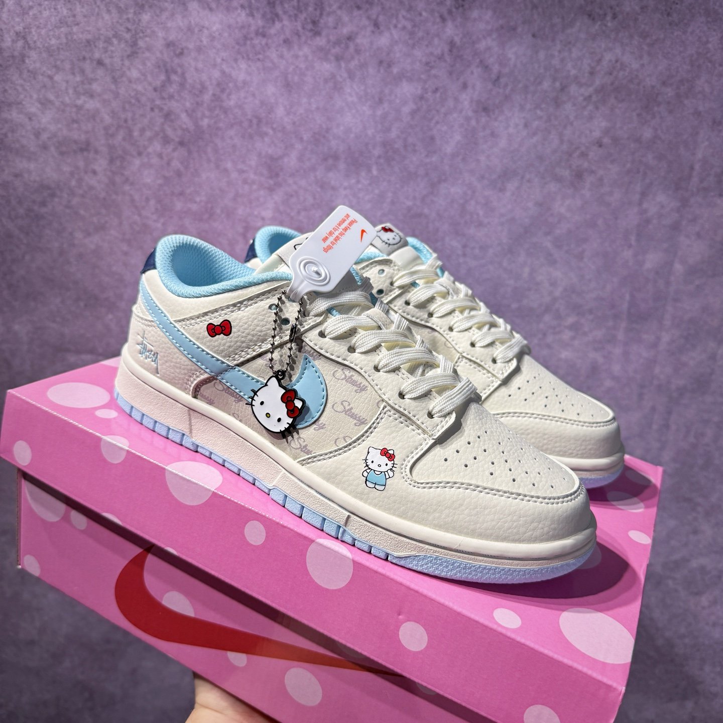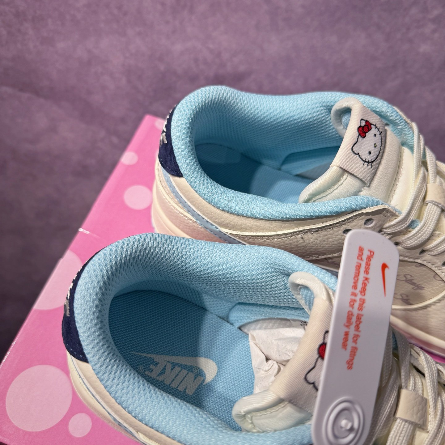 Sweet girl style Nike Dunk Low skate shoes, popular Hello Kitty cartoon co-branded design.
