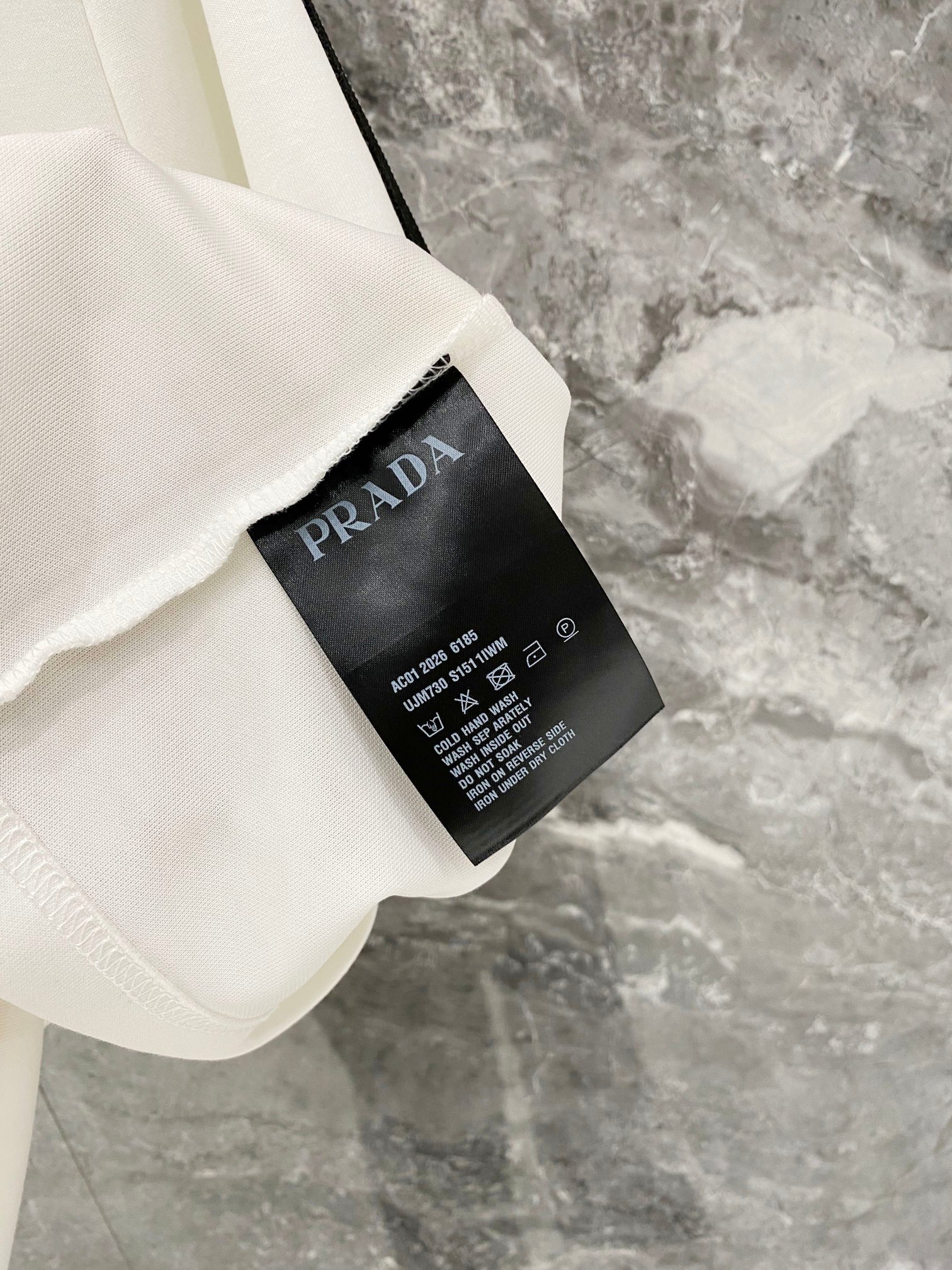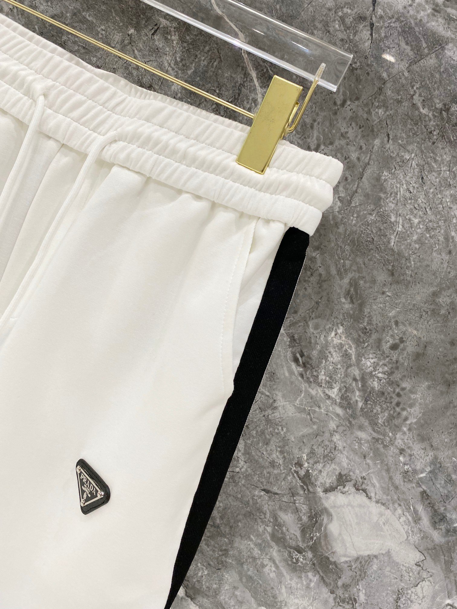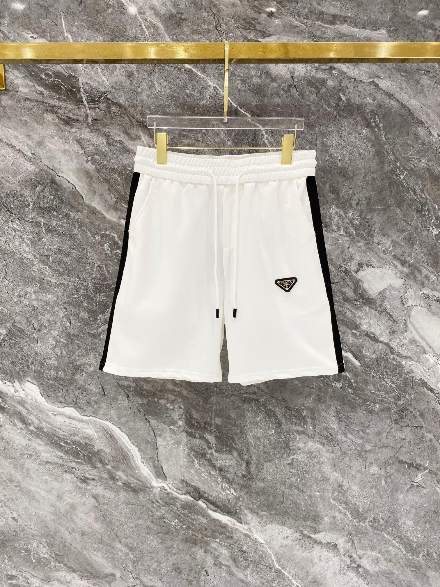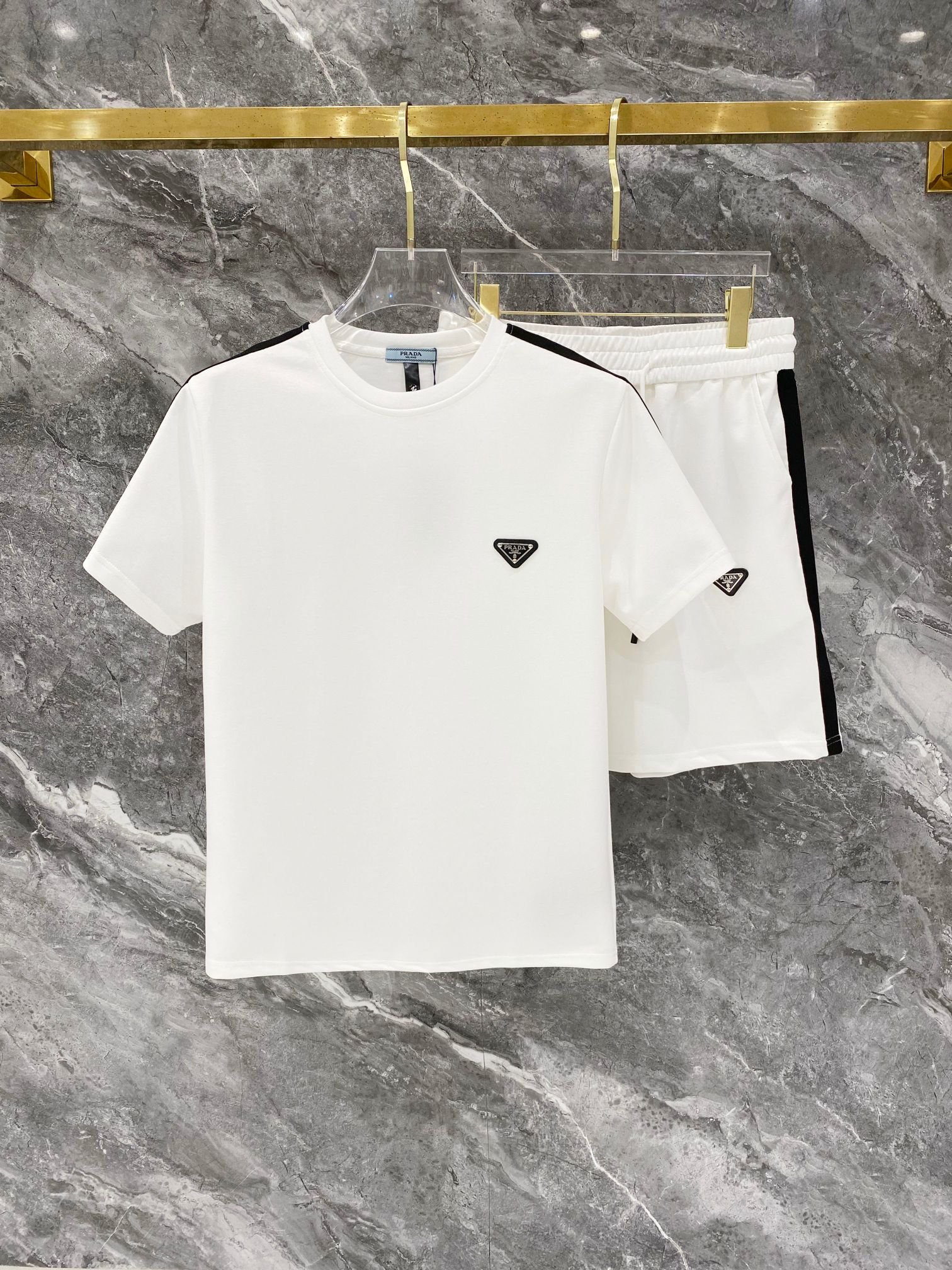 Prada White Side Stripe Triangle Badge T-Shirt & Drawstring Shorts Two-Piece Men Casual Set