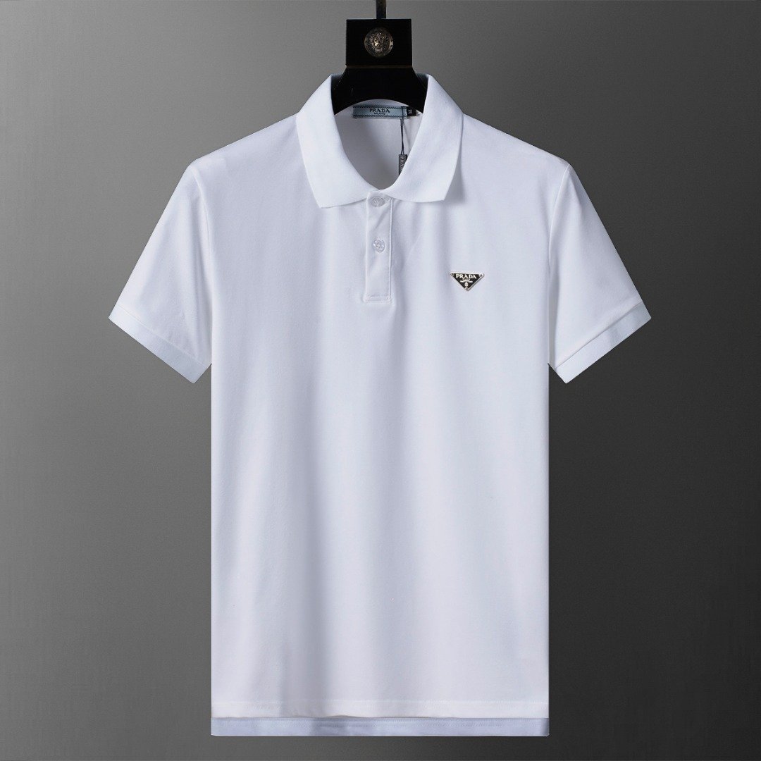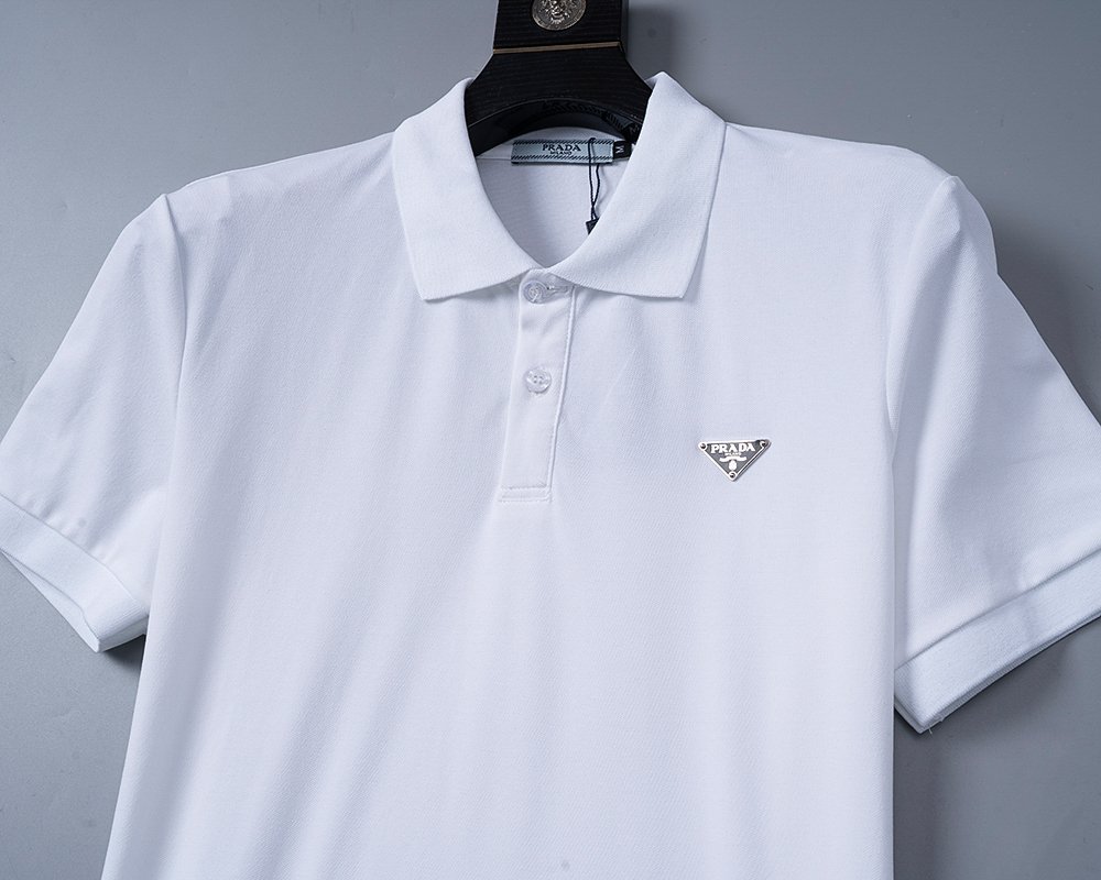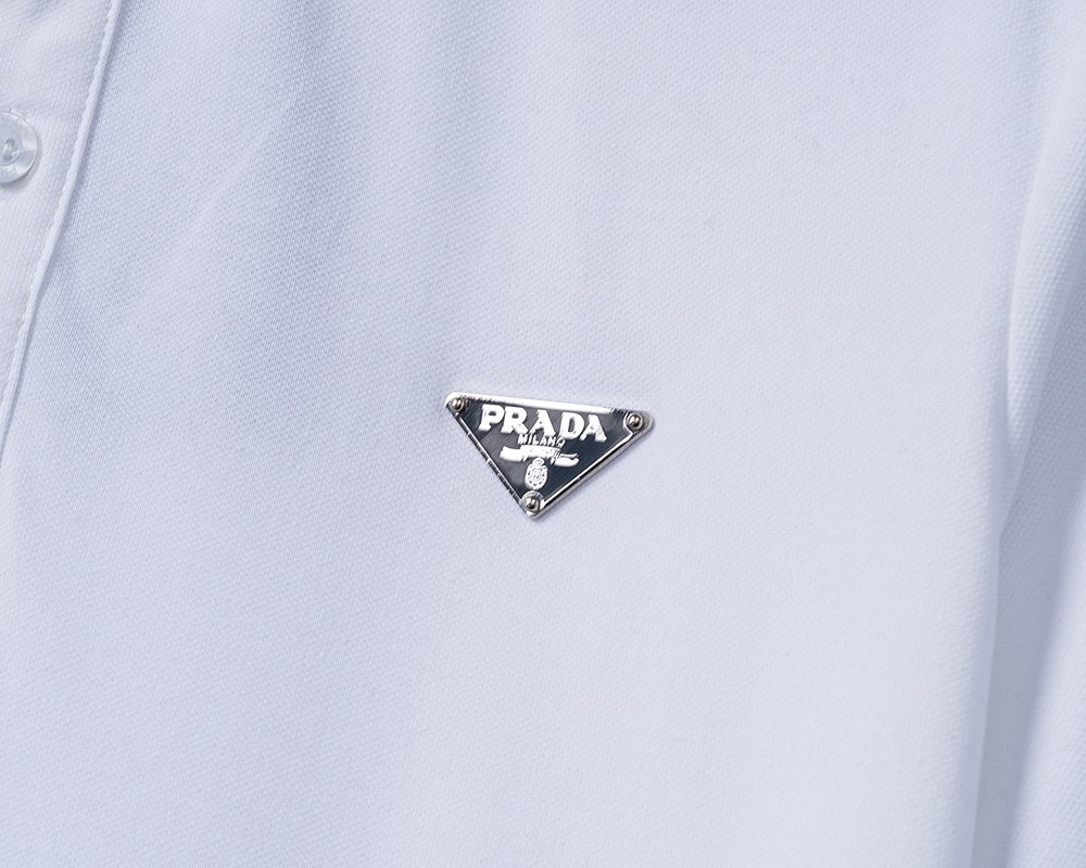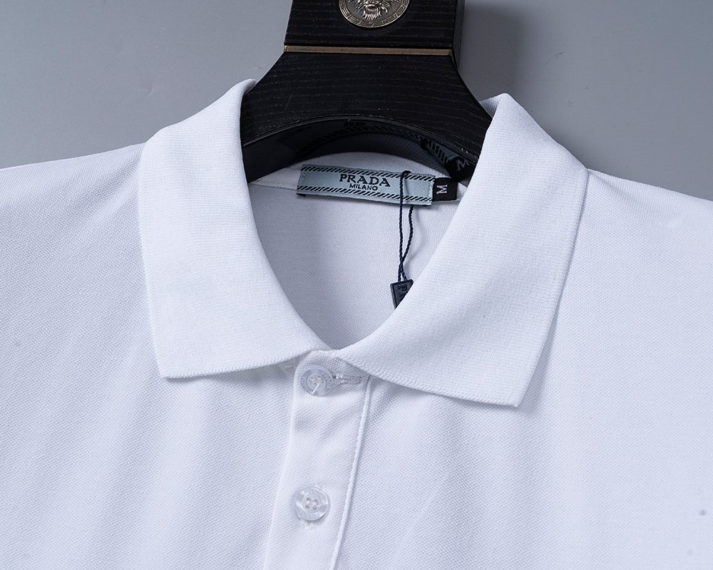 Prada White Triangle Badge Solid Color Men Casual Short Sleeve Polo Shirt