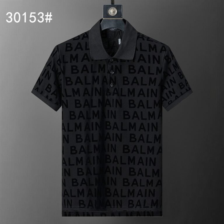 Balmain Black Full Print Letter Logo Men Casual Short Sleeve Polo Shirt