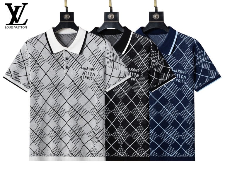 Louis Vuitton Argyle Plaid Color Trim Knit Casual Men Polo Tee