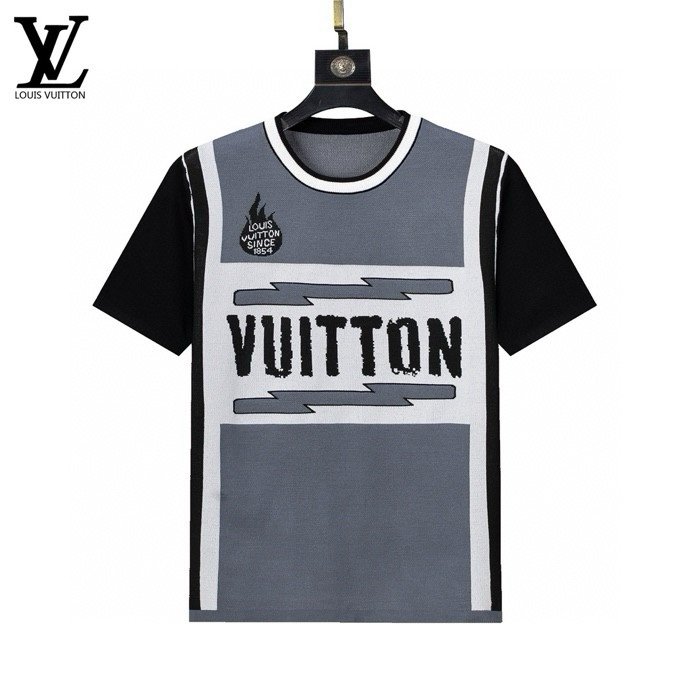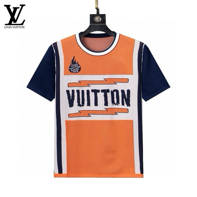 Louis Vuitton Color Block Lightning Print Men Casual Short Sleeve Knit T-Shirt