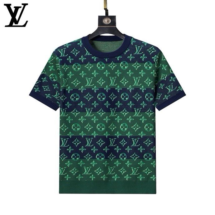 Louis Vuitton Vertical Cable Knit Shield Badge Men Casual Short Sleeve Knit T-Shirt
