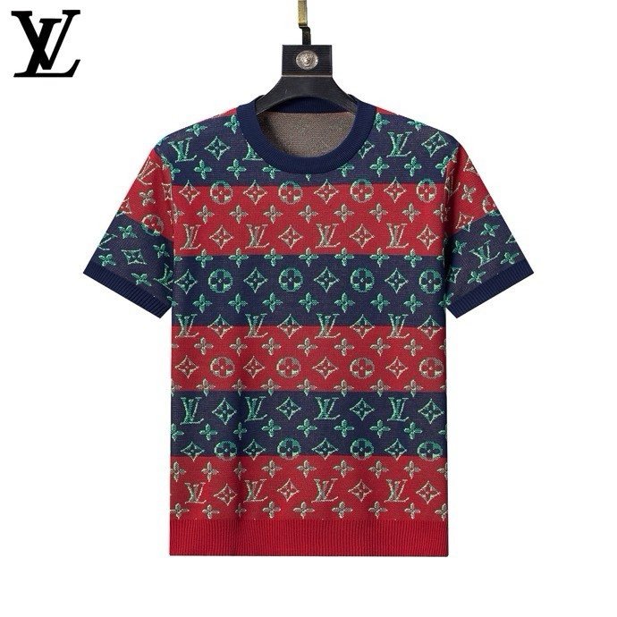 Louis Vuitton Striped Monogram Jacquard Men Casual Short Sleeve Knit T-Shirt