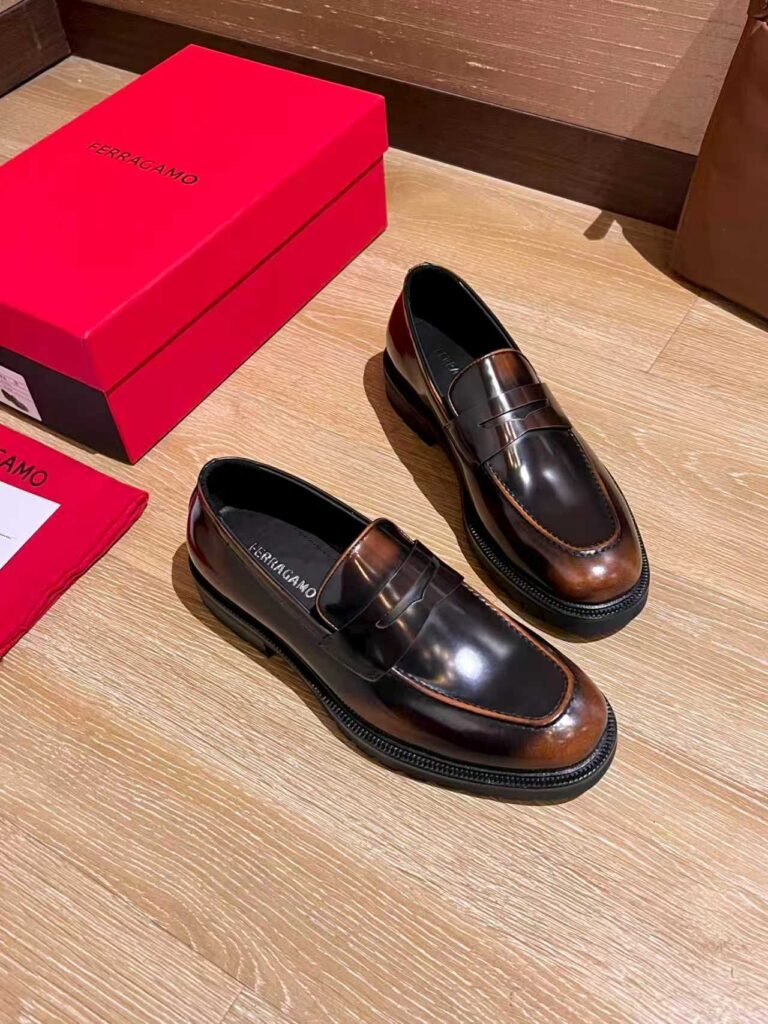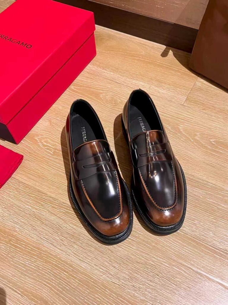 Ferragamo Gradient Brown Glossy Washed Thick Sole Penny Loafer Slip-On Men Formal Shoes